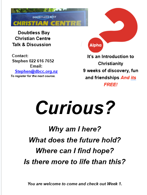 Alpha is a relaxed, discussion-based course our church is running for anyone curious about the Christianity.